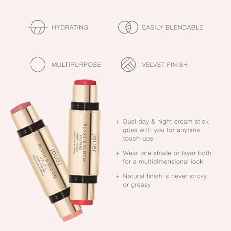 JOUER BLUSH & BLOOM CHEEK + LIP DUO - CREMA HIDRATANTE PARA TINTE DE LABIOS Y MEJILLAS, FóRMULA HIDRATANTE DE ACEITE DE ESCARAMUJO Y ESCUALANO, MEJORA