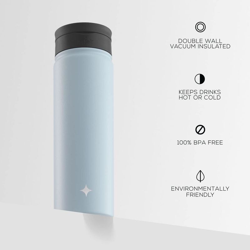 JARDÍNCAMPINGTERMOSJoyJolt Botella de agua con triple aislamiento con tapa de popote y tapa abatible. Botella de agua
