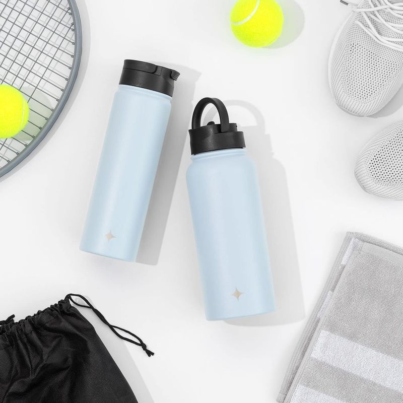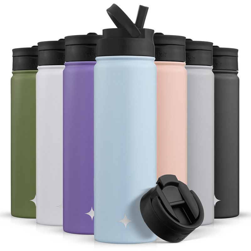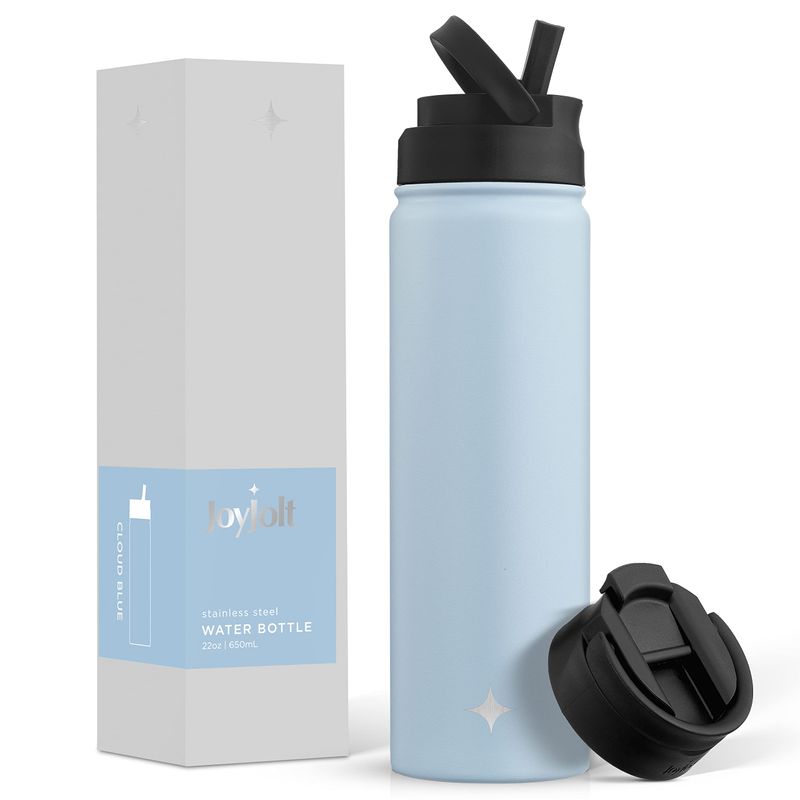 JoyJolt Botella de agua con triple aislamiento con tapa de popote y tapa abatible. Botella de agua