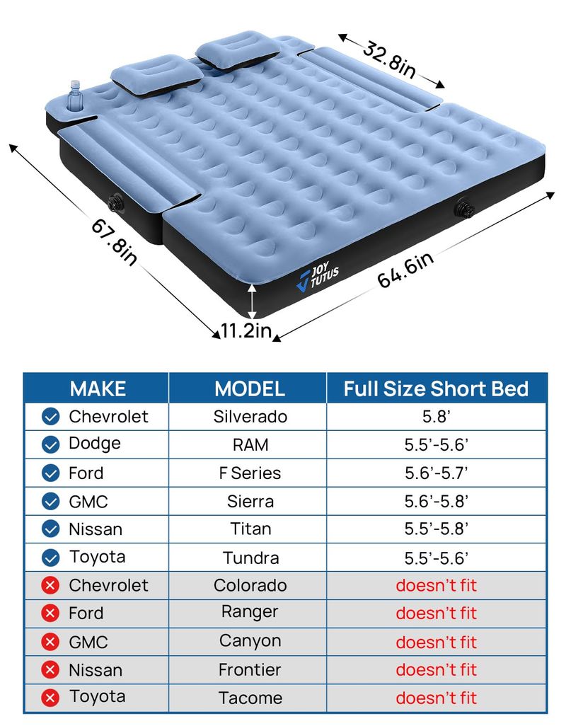 JOYTUTUS Colchón de aire inflable para cama de camión de 6 a 6.5 pies, colchón de aire inflable de