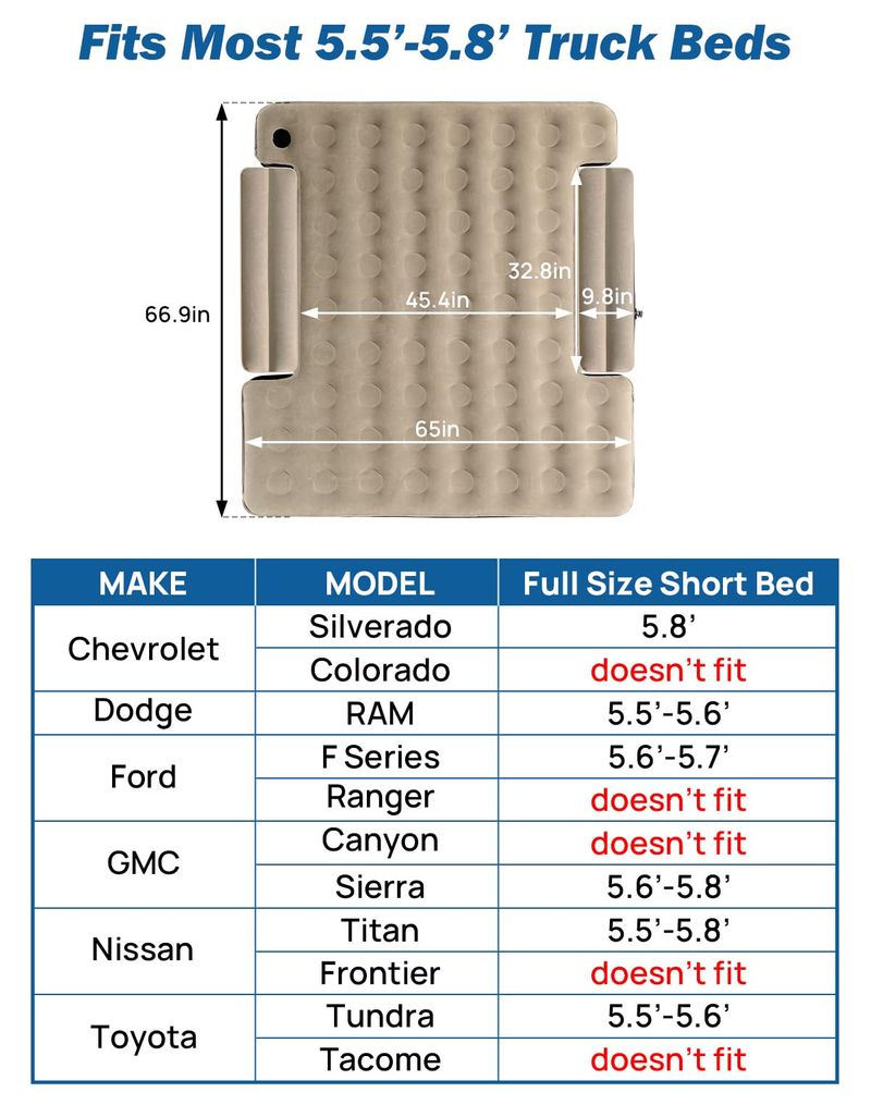 JOYTUTUS Colchón de aire inflable para cama de camión de 6 a 6.5 pies, colchón de aire inflable de