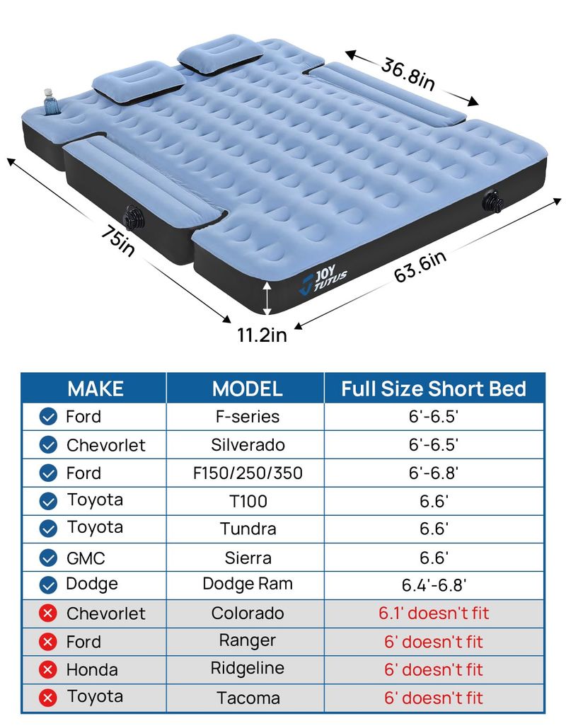 JOYTUTUS Colchón de aire inflable para cama de camión de 6 a 6.5 pies, colchón de aire inflable de