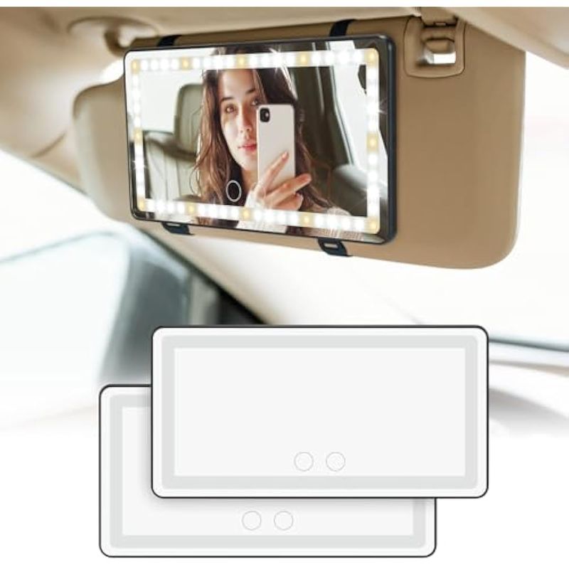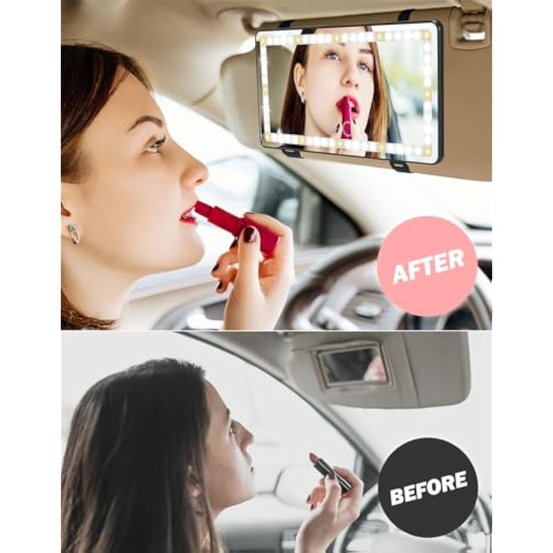 JOYTUTUS Espejo para maquillarse para poner en parasol de auto, con luces y 3 modos de iluminación,