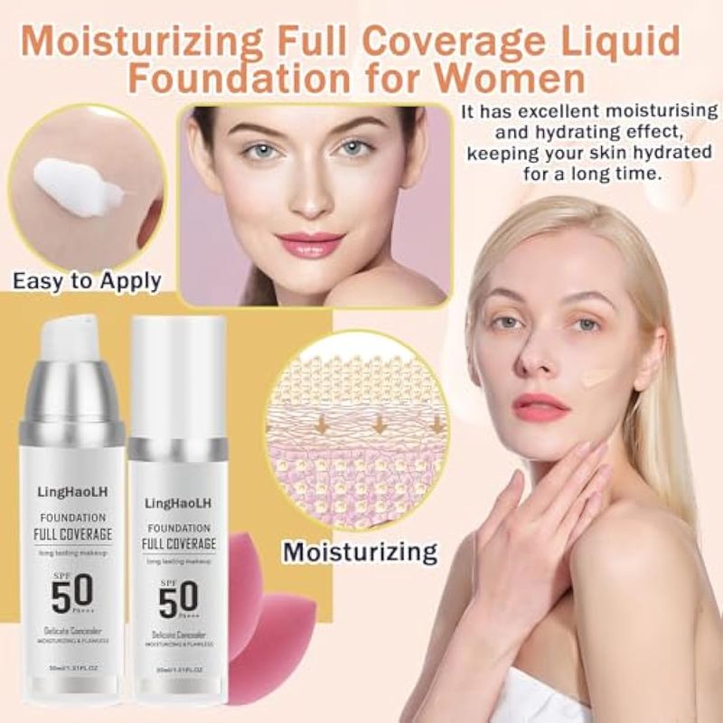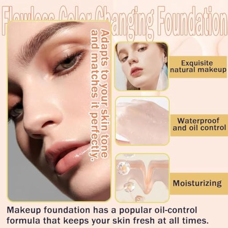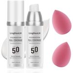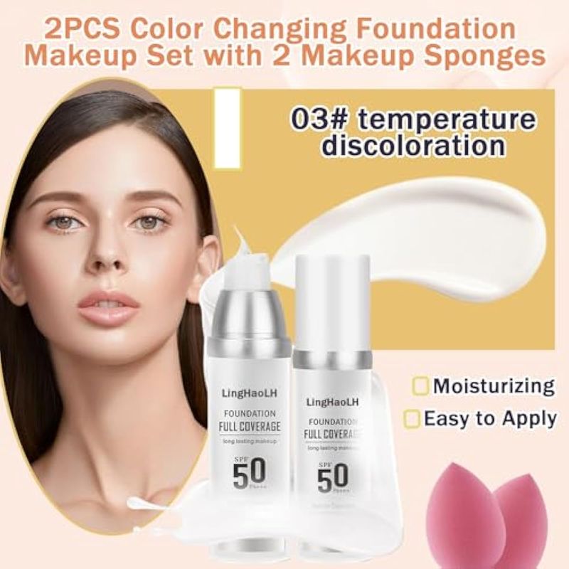 Juego de 2 bases de maquillaje que cambian de color con 2 esponjas de maquillaje, base líquida