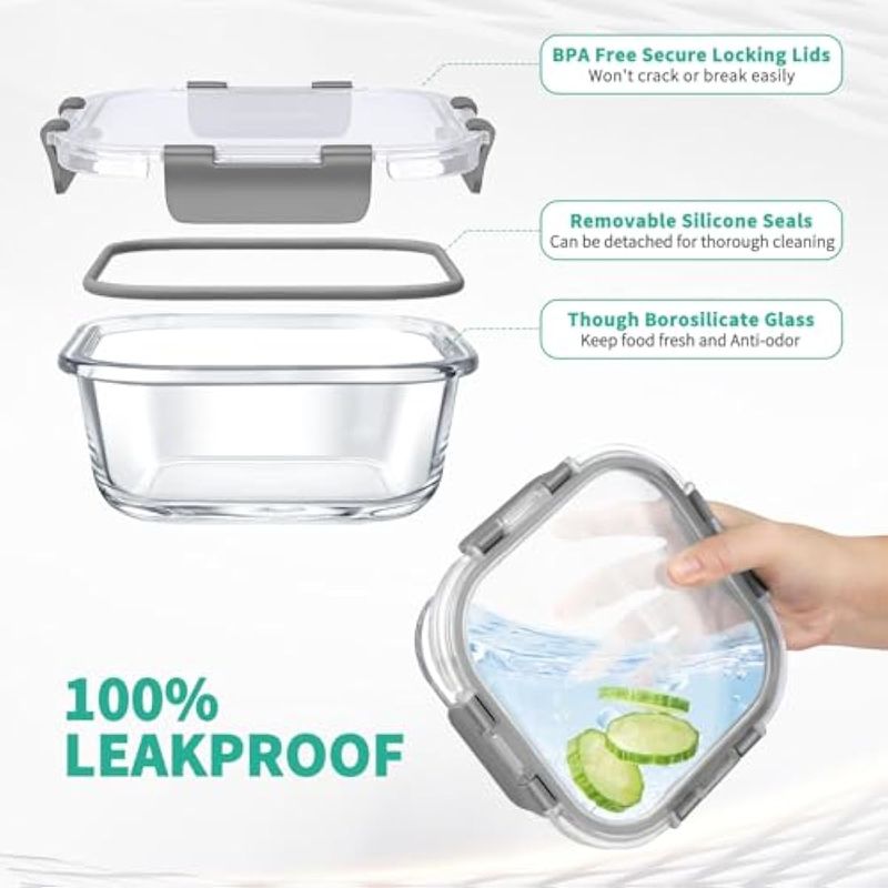Juego de 34 recipientes de vidrio para almacenamiento de alimentos con tapas, recipientes herméticos