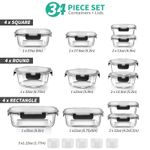 HOGARBAZARUTENSILIOS DE COCINAJuego de 34 recipientes de vidrio para almacenamiento de alimentos con tapas, recipientes herméticos