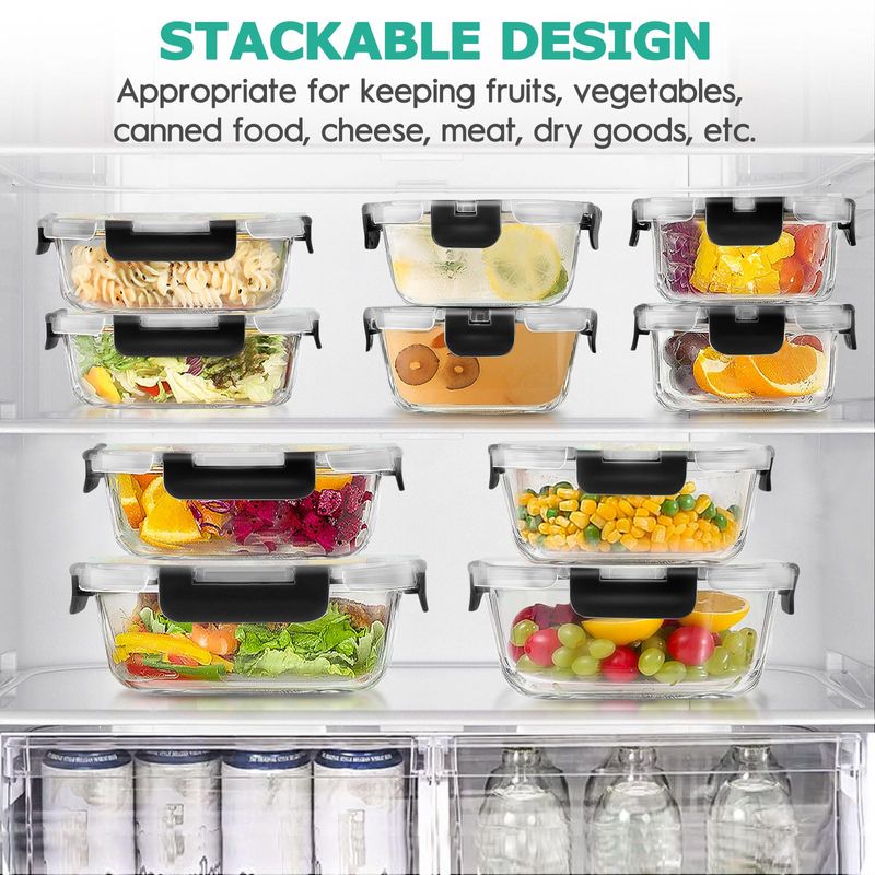 Juego de 34 recipientes de vidrio para almacenamiento de alimentos con tapas, recipientes herméticos