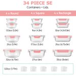 HOGARBAZARUTENSILIOS DE COCINAJuego de 34 recipientes de vidrio para almacenamiento de alimentos con tapas, recipientes herméticos