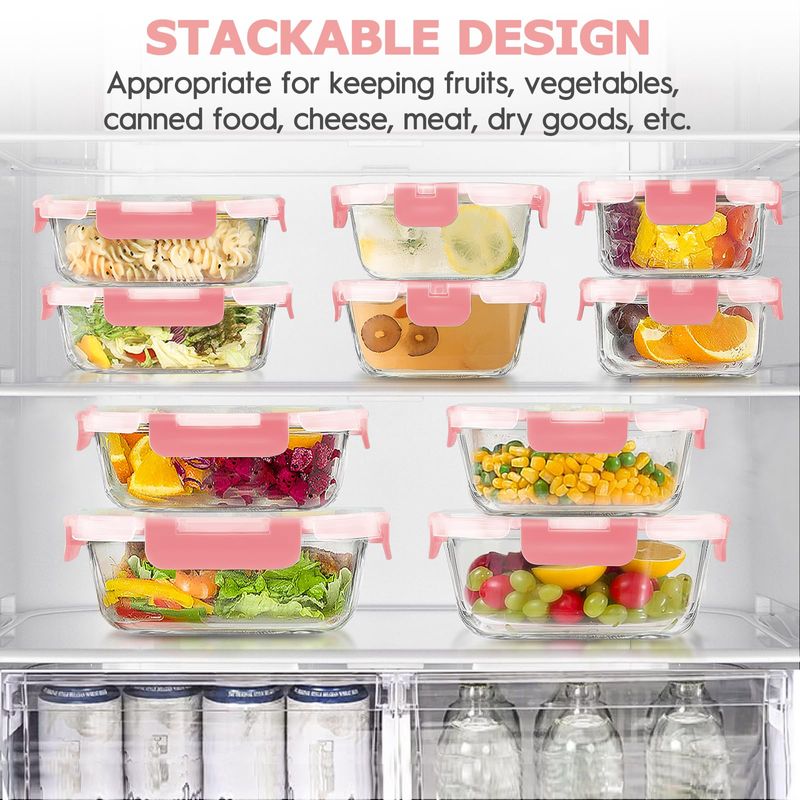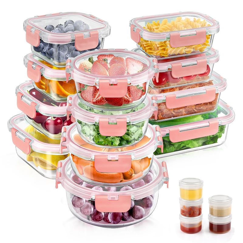 Juego de 34 recipientes de vidrio para almacenamiento de alimentos con tapas, recipientes herméticos