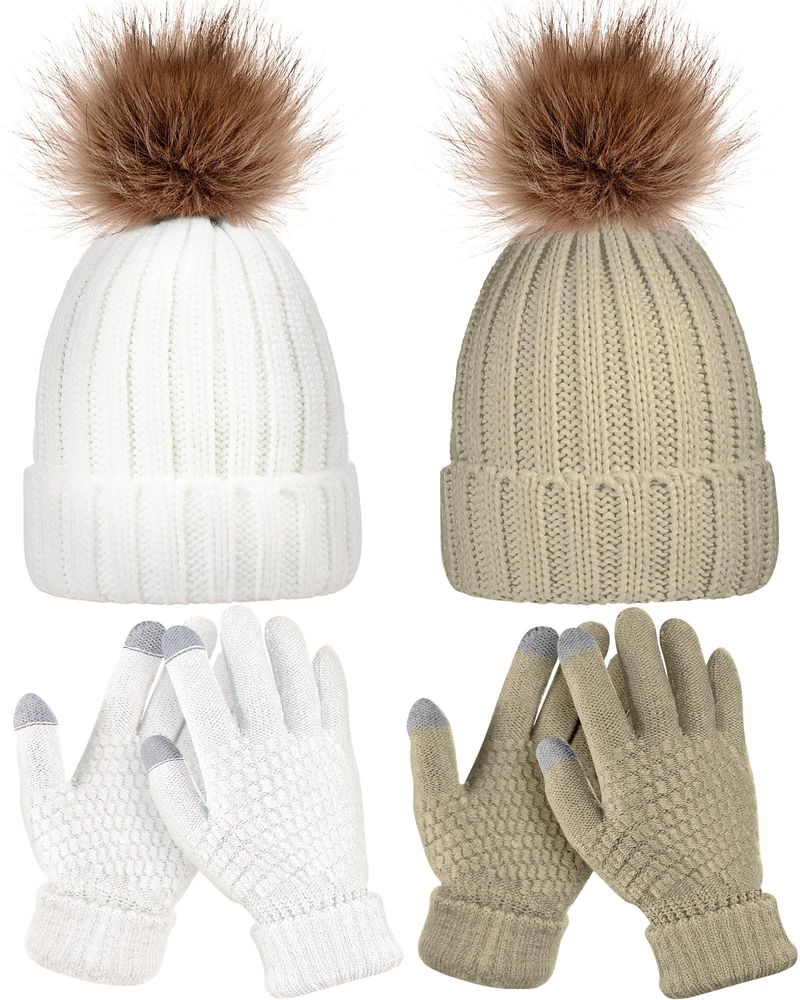 Juego de 4 gorros de invierno para mujer, gorro de punto, guantes para pantalla táctil