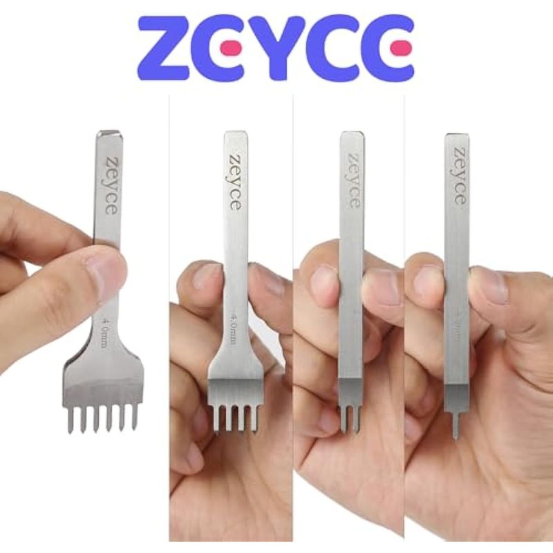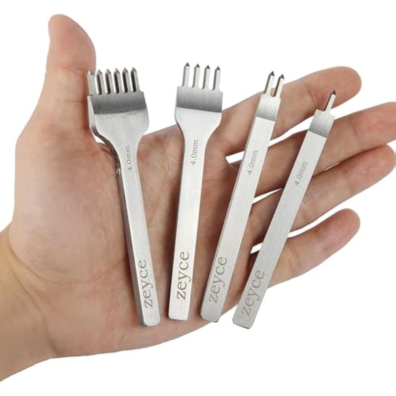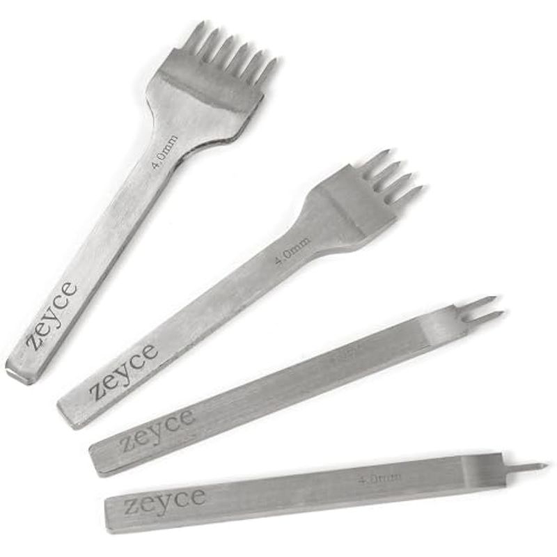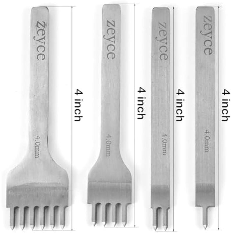 Juego de 4 perforadores de cuero de punta, herramientas de trabajo de cuero de acero blanco de 0.157