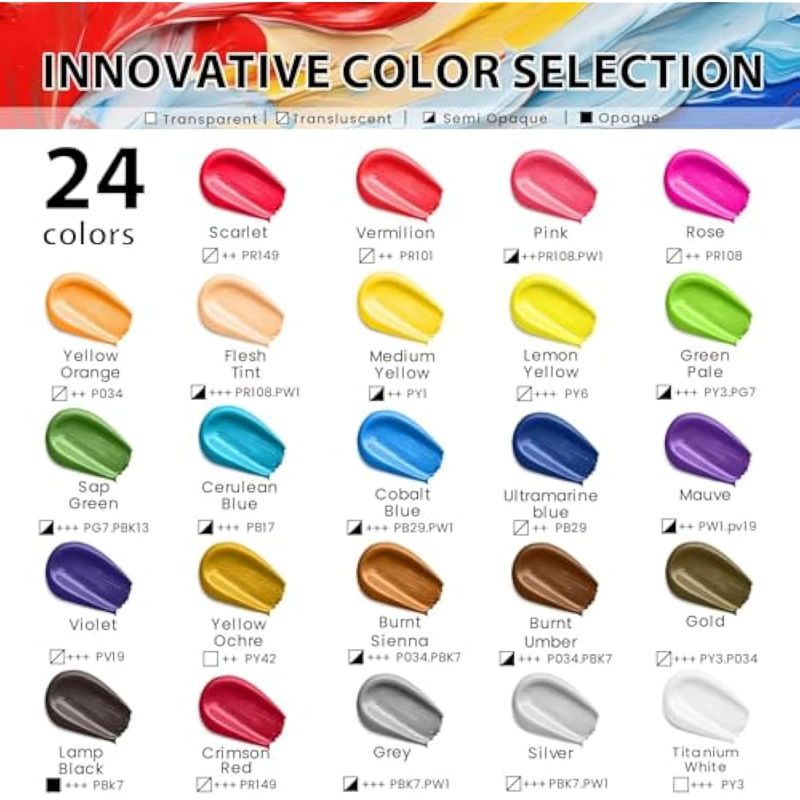 Fácil de mezclar para infinitos colores: explora tu creatividad con nuestras pinturas acrílicas de 24 colores vibrantes, puedes mezclar colores sin esfuerzo para crear tu paleta única de tonos y tonos, ofreciendo una infinita gama de posibilidades para que crees obras de arte impresionantes y llamativas.