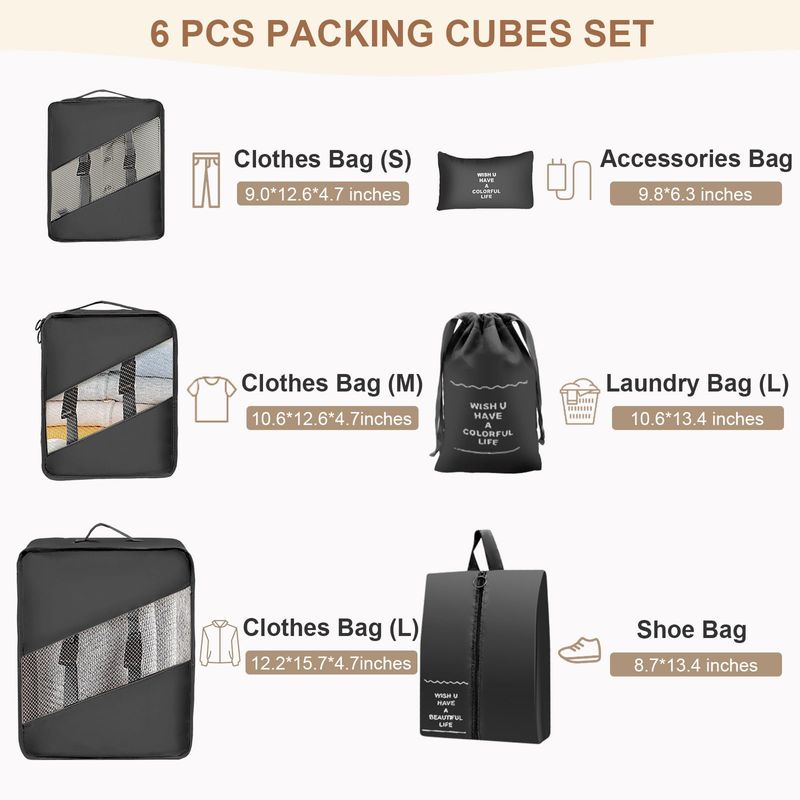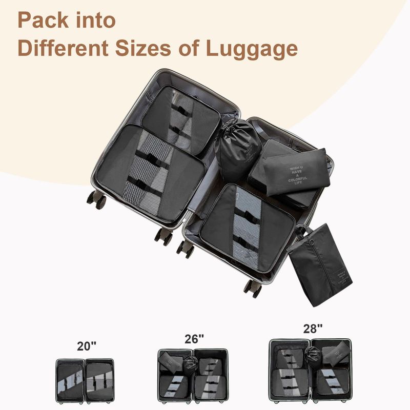 Juego de 7 cubos de embalaje para viajes, organizador de viaje para maleta, equipaje, bolsas de