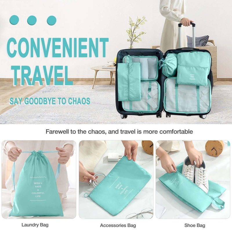 Juego de 8 cubos de embalaje para maletas, cubos de embalaje con bolsa de zapatos, bolsa de