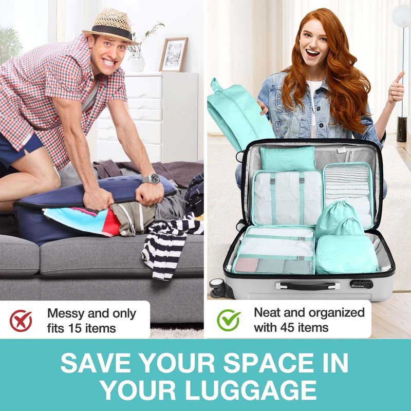 Juego de 8 cubos de embalaje para maletas, cubos de embalaje con bolsa de zapatos, bolsa de