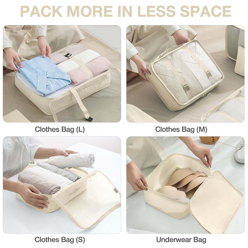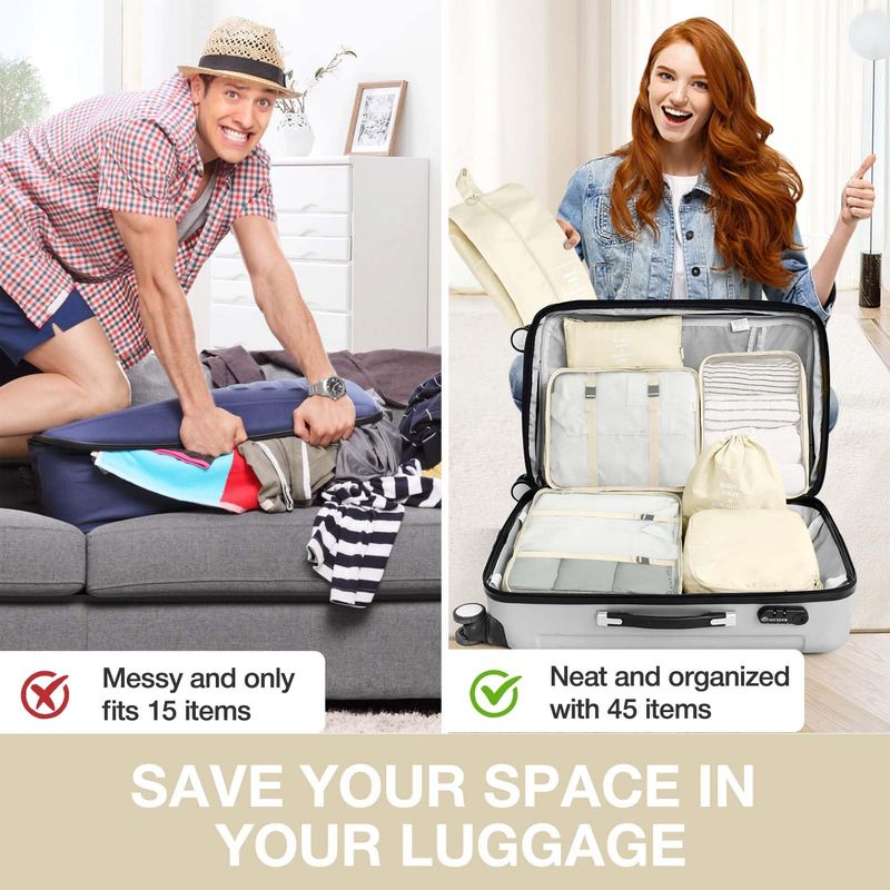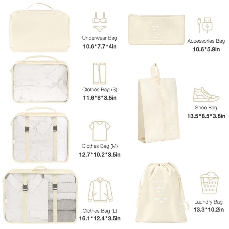 Juego de 8 cubos de embalaje para maletas, cubos de embalaje con bolsa de zapatos, bolsa de