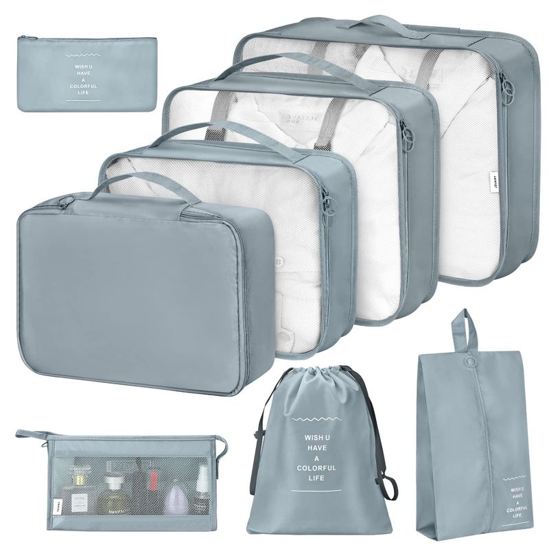 Juego de 8 cubos de embalaje para maletas, cubos de embalaje con bolsa de zapatos, bolsa de