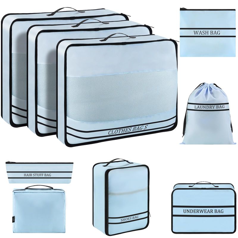 JUEGO DE 9 CUBOS DE EQUIPAJE ORGANIZADORES DE EQUIPAJE PARA ACCESORIOS DE VIAJE, BOLSAS DE VIAJE QUE AHORRAN ESPACIO PARA EQUIPAJE DE MANO, CREMALLERA DE MALLA LIGERA, ROPA, ZAPATOS, BOLSA DE