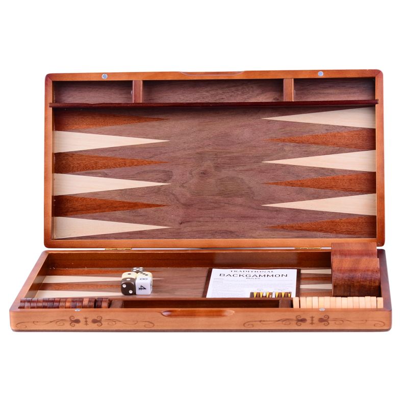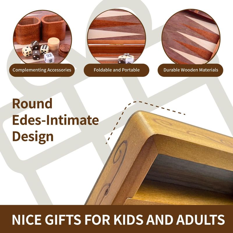 JUEGO DE BACKGAMMON CON INCRUSTACIONES DE MADERA, ESTUCHE DE JUEGO DE MESA DE ESTRATEGIA CLáSICO DE 15.7 PULGADAS, TAMAñO GRANDE, BACKGAMMON CON PIEZAS DE DAMAS PARA ADULTOS Y NIñOS