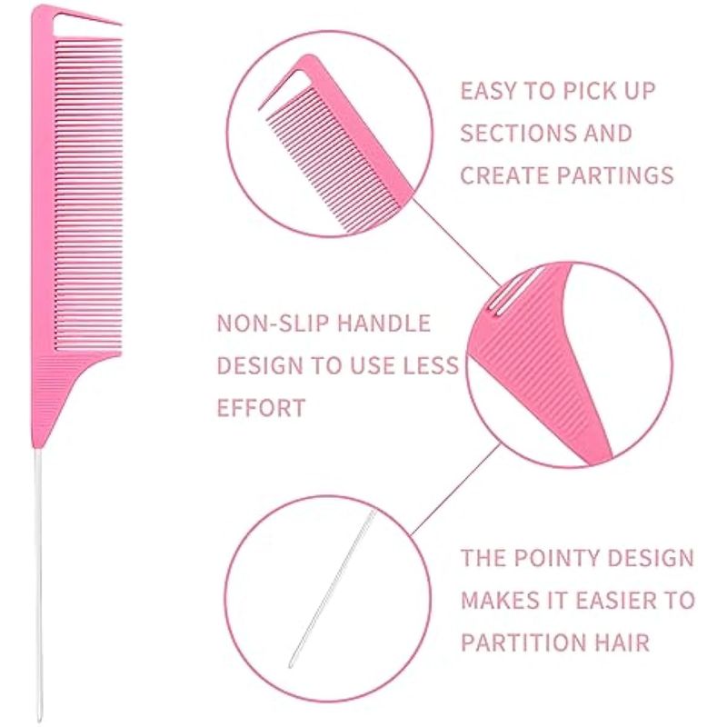 Peine de cola de rata y cepillo de borde de doble cara: este peine de cola de rata está hecho de agujas de acero inoxidable 304 y peine de plástico ABS respetuoso con el medio ambiente, que no se rompe durante el uso normal. Resistente al calor, para peinar, separar, peinar después del peinado, tejer pelucas, teñir el cabello, peinar y cortar el cabello. El cepillo lateral de doble cara está hecho de plástico ABS respetuoso con el medio ambiente adecuado para peinar flequillo, línea del cabello, bordes de cabello, cejas y pestañas, cabello trasero y distribución.