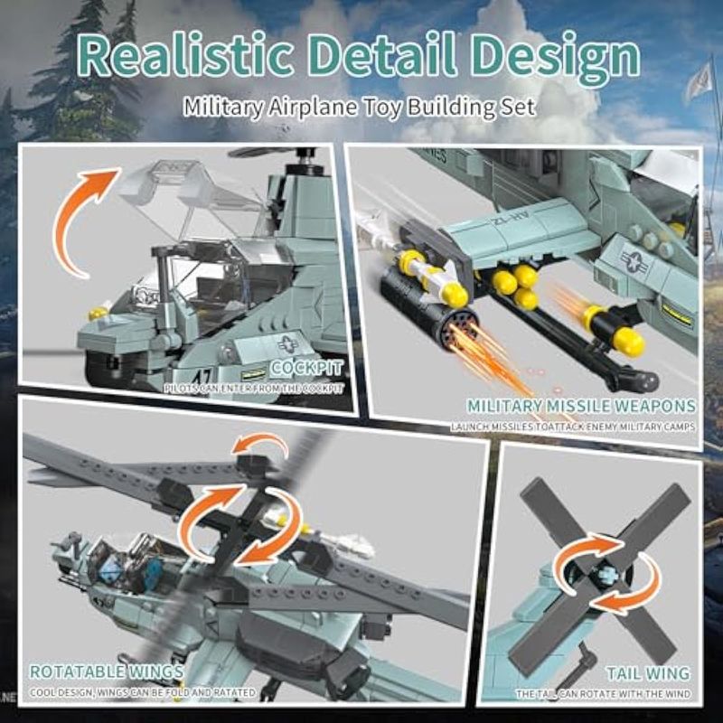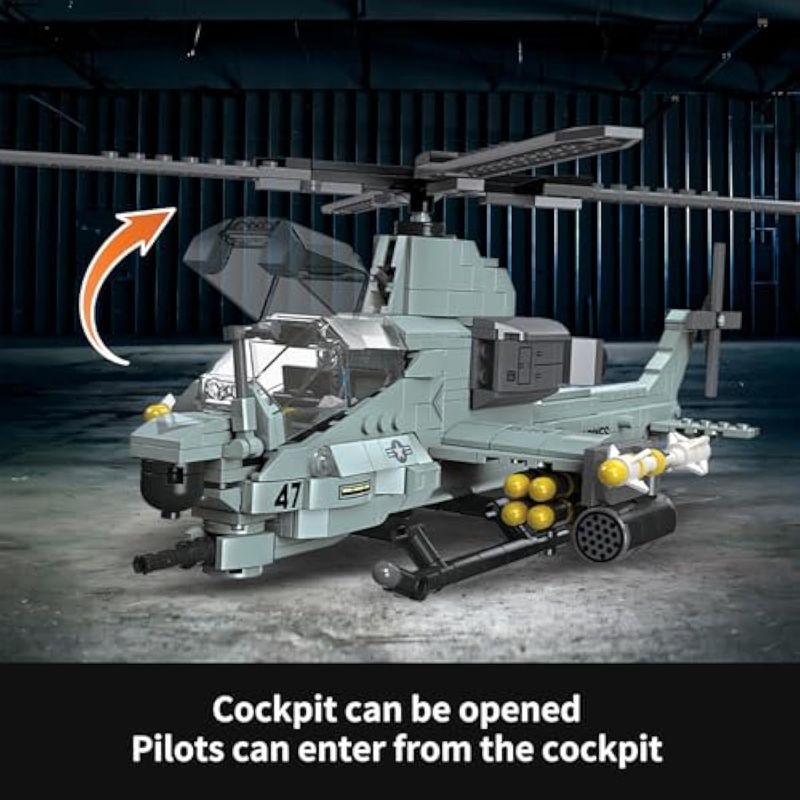 BEBES Y NIÑOSJUGUETESJuego de construcción de helicóptero AH-1Z Viper de 597 piezas, kit de construcción de aviones