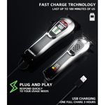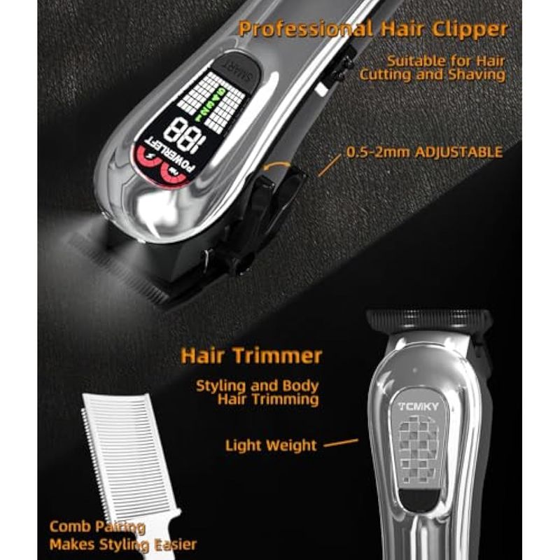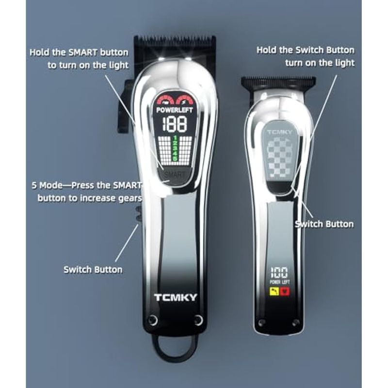 Cortapelos profesionales multifuncionales TCMKY integran las funciones de un peluquero y recortadora. Utilizan recortadoras de cuchillas de cero espacio libre en forma de T. El cabezal de la recortadora se puede cortar a 0.004 in, lo que permite un fácil recorte de patillas, cuello, contorno y barba. Estos cortaúñas cumplen con los estándares profesionales para contornos completos, afeitado en seco y decoloración.