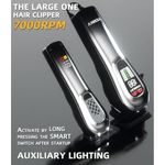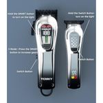 Iluminación auxiliar: el juego de recortadora de pelo TCMKY está equipado con una opción de iluminación adecuada, que se encuentra en la cabeza de la cortadora de pelo. Presiona el interruptor de encendido hacia arriba para encender la cortadora de pelo, y luego mantén presionado el botón SMART durante 3 segundos para encender la función de iluminación. Además, para encender la función de iluminación de la pequeña recortadora, simplemente mantén presionado el interruptor después de encenderlo para activarlo