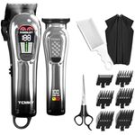 TCMKY Juego profesional de cortapelos y recortadora: la cortadora de pelo grande se puede utilizar para afeitarse tanto el cabello como la barba, mientras que la pequeña recortadora está equipada con una cuchilla en forma de T para recortar las patillas y los bordes alrededor de las orejas. Puedes obtener fácilmente el corte de pelo que deseas en casa, como en una peluquería