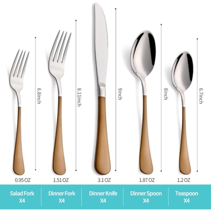 Juego de cubiertos marrones de 20 piezas para 4, juego de cubiertos de acero inoxidable 18/0,
