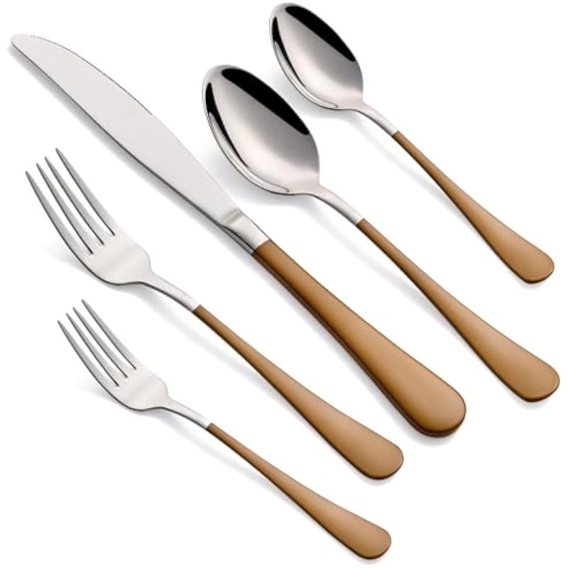 HOGARBAZARUTENSILIOS DE COCINAJuego de cubiertos marrones de 20 piezas para 4, juego de cubiertos de acero inoxidable 18/0,