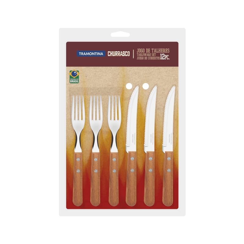 Juego de Cubiertos Tramontina Dynamic 12 Piezas Acero con Mango de Madera | Elegancia rústica y funcionalidad duradera para tus comidas