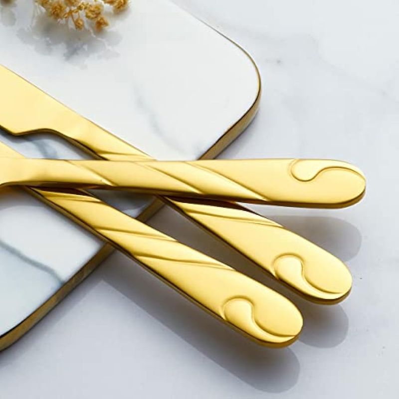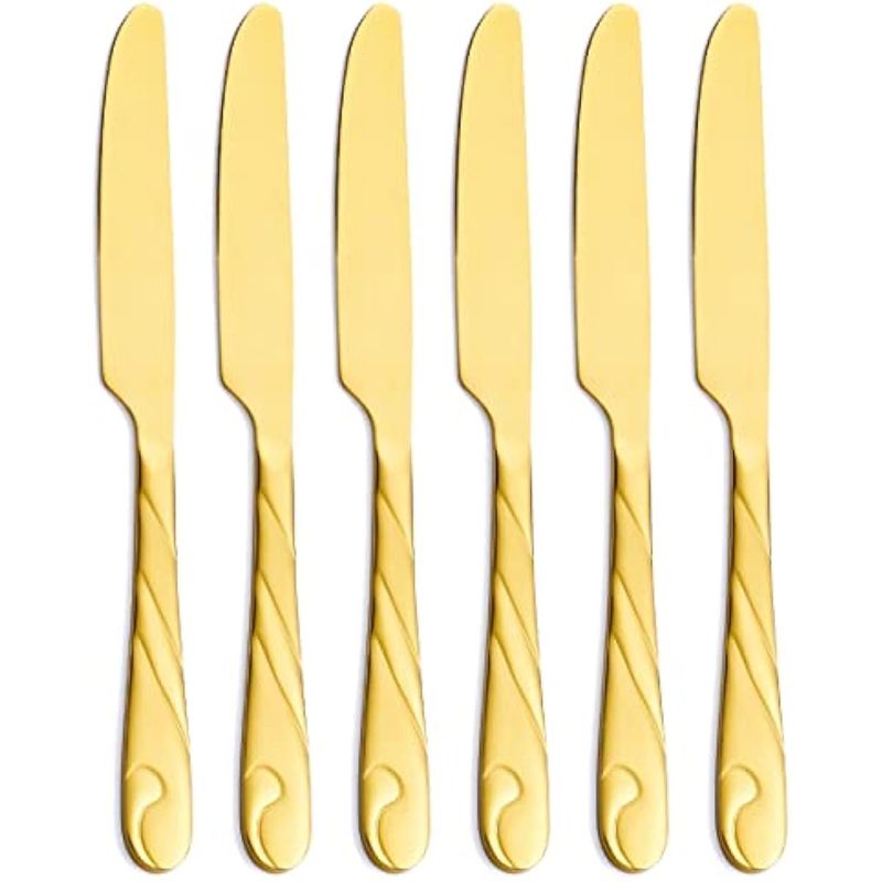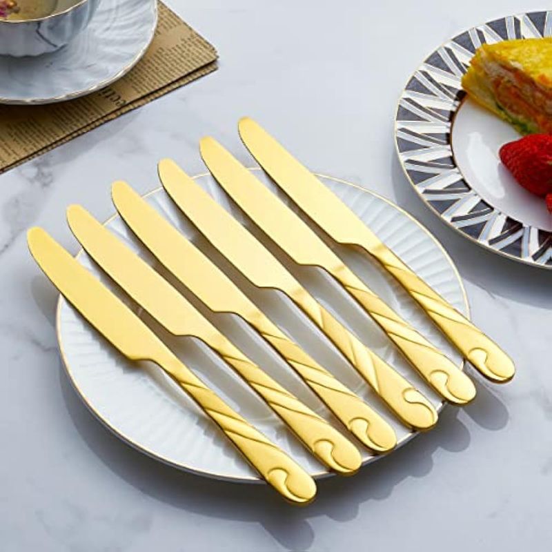 Incluye: Este juego de cubiertos dorados contiene 6 cuchillos dorados que están diseñados para comidas diarias en casa y sirven hasta 6 personas.