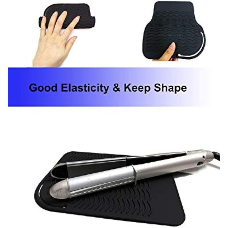 JUEGO DE GUANTES Y TAPETES DE SILICONA RESISTENTES AL CALOR PARA RIZADOR, ALISADOR DE PELO, PLANCHAS PLANAS, TAPETE DE SILICONA DE GRADO ALIMENTICIO DE 9 X 6.5 PULGADAS, COLOR NEGRO