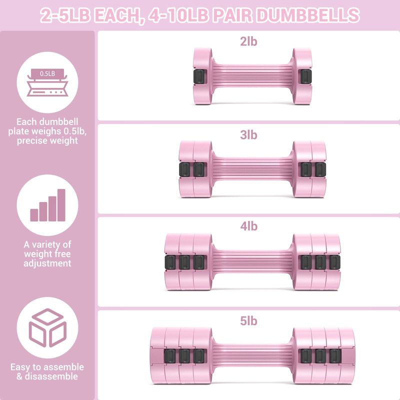 Juego de mancuernas ajustables para mano: Sportneer 1 par de 4, 6, 8, 10 libras (2-5 libras cada