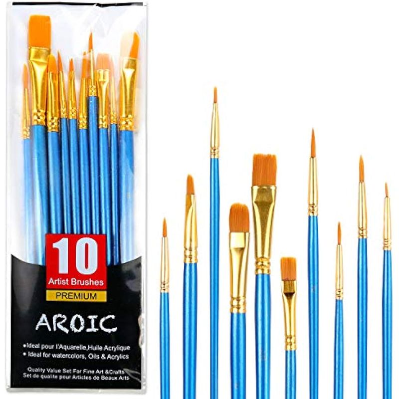 Juego de pinceles de pintura acrílica, 1 paquete/10 pinceles de acuarela, pinceles de nailon para el