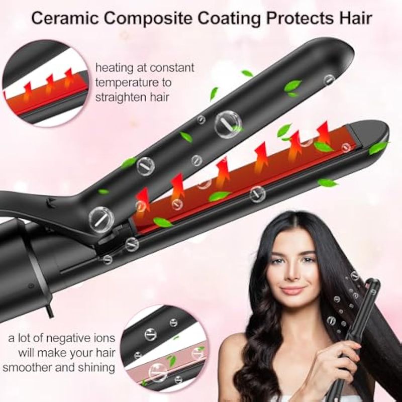 Más fácil y seguro de usar: es fácil cambiar entre diferentes accesorios y conveniente de llevar. El cable giratorio de 360° de 7 pies es más libre, no se enredará sin importar cómo utilices el juego de alisador y rizador de cabello. Punta de enfriamiento, soporte antiquemaduras, guante resistente al calor, apagado automático de 60 minutos, son agradables para la tranquilidad.