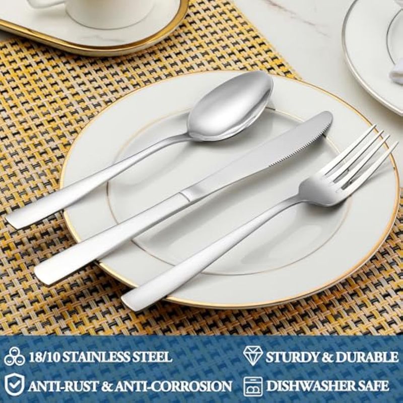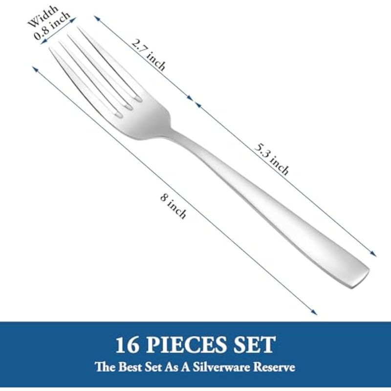 HOGARBAZARUTENSILIOS DE COCINAJuego de tenedores de cena de 16 piezas, tenedores de postre de acero inoxidable extrafinos de grado