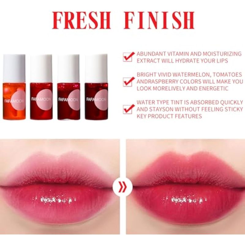 Aspecto fresco: el tinte labial con agua afrutada con tonos ligeros y vibrantes para labios y mejillas que no son grasosos y no pegajosos. Deja tus labios sintiéndose cómodos y frescos.