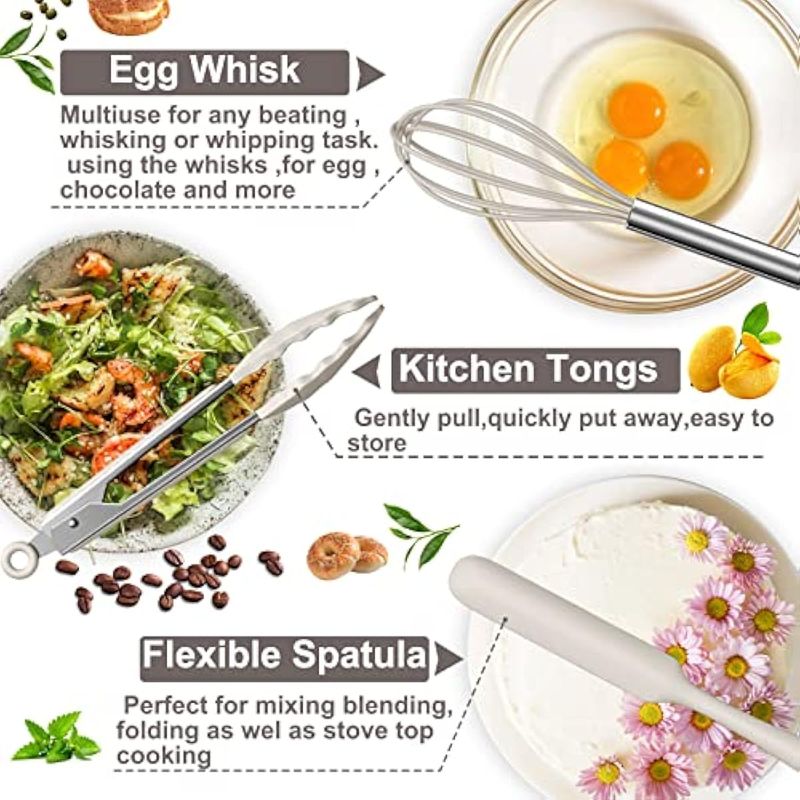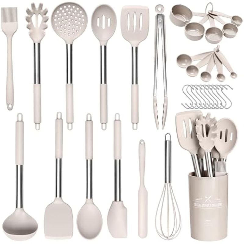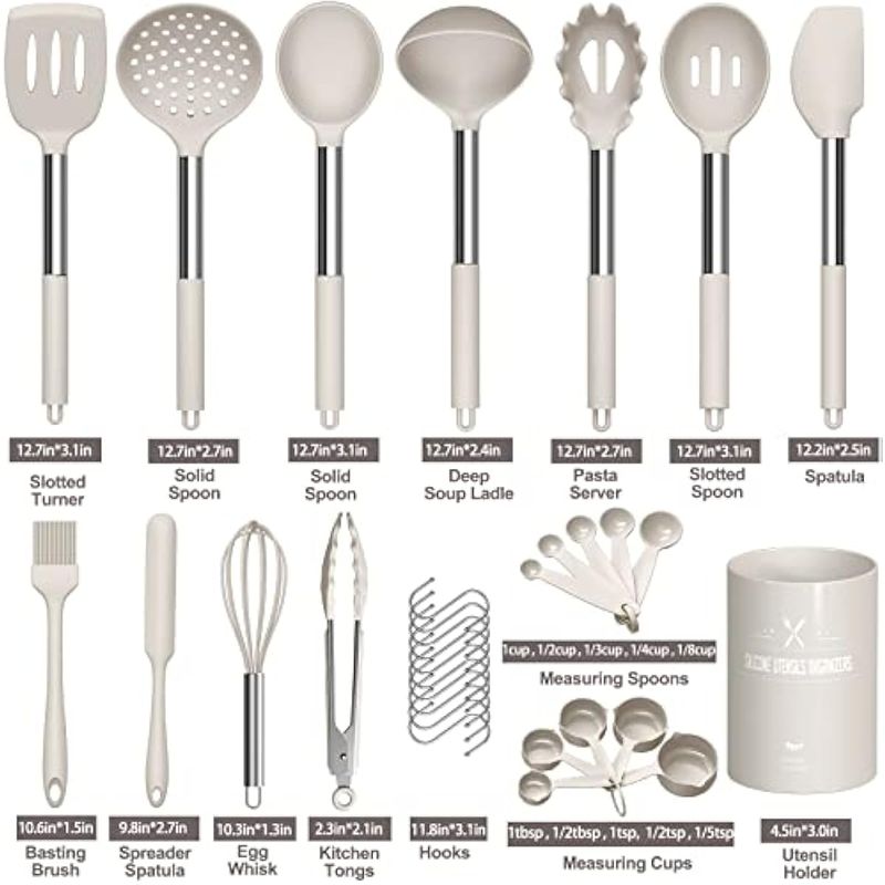 HOGARBAZARUTENSILIOS DE COCINAJuego de utensilios de cocina de silicona para utensilios de cocina antiadherentes, utensilios de