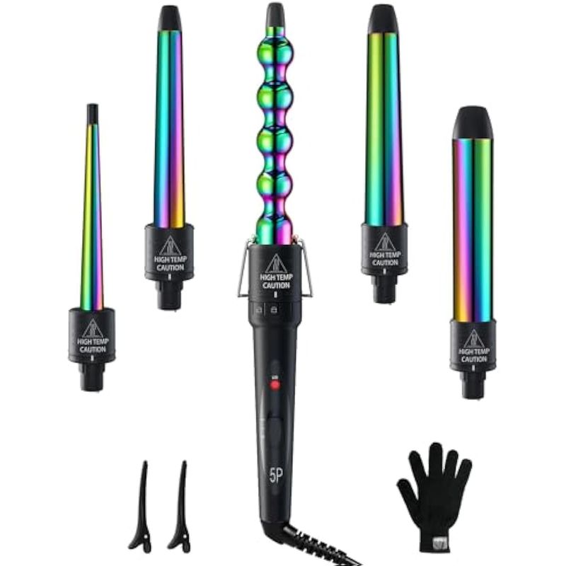 JUEGO DE VARITA RIZADORA 5 EN 1: VARITA RIZADORA OHUHU 5 PIEZAS DE 0.35 A 1.25 PULGADAS, BARRIL DE CERáMICA INTERCAMBIABLE, GUANTE PROTECTOR CONTRA EL CALOR, 2 CLIPS, RIZADOR DE PELO DE DOBLE VOLTAJE