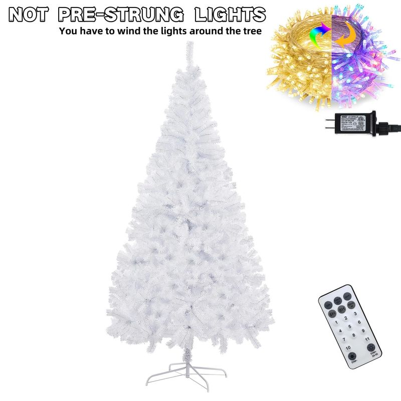 Juegoal Árbol de Navidad artificial de 6 ft con 300 luces LED multicolor (no pre-encordadas), 8