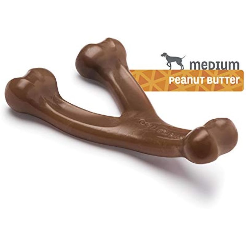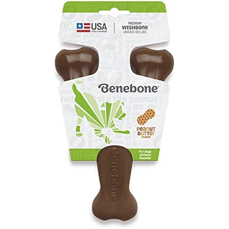 Juguete para morder hueso de la suerte saborizado con mantequilla de cacahuate de Benebone, M