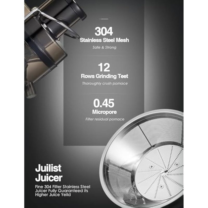 Juilist - Extractor de exprimidores de boca ancha de 3 pulgadas, potencia máxima de 800 W, para