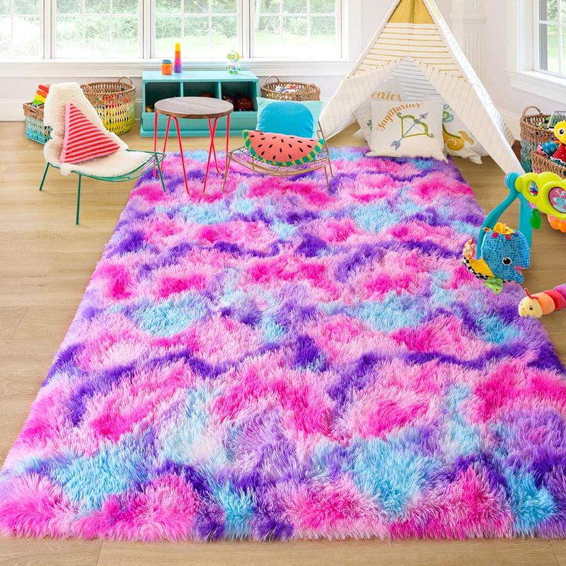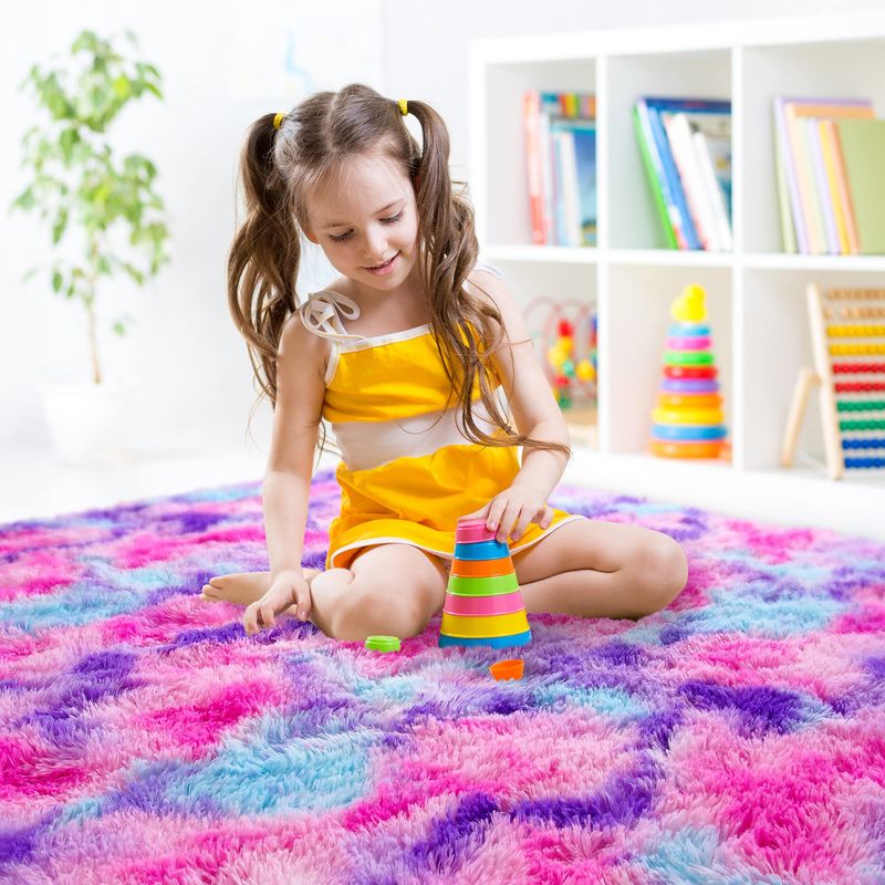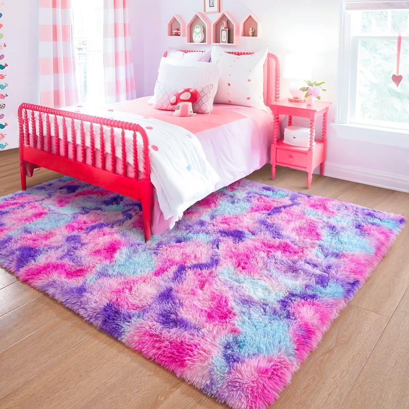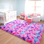 JUNOVO - Alfombras de área ultra suaves de 4 x 5.3 pies, alfombras esponjosas para dormitorio,