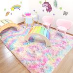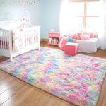JUNOVO - Alfombras de área ultra suaves de 4 x 5.3 pies, alfombras esponjosas para dormitorio,