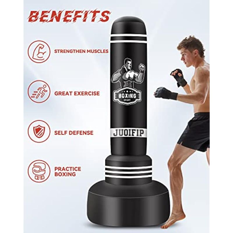 JUOIFIP SACO DE BOXEO INDEPENDIENTE PARA ADULTOS, BOLSA DE BOXEO PESADA INDEPENDIENTE DE 69 PULGADAS PARA ADULTOS, BOLSA DE BOXEO INFLABLE PARA HOMBRE, BOLSA DE KICKBOXING INFLABLE PARA EL HOGAR, OFICINA, GIMNASIO (CON CAJA DE REGALO)