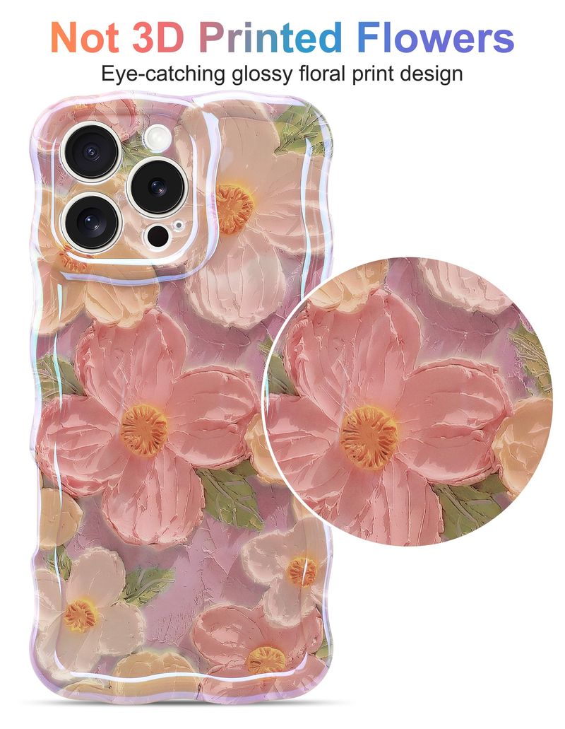 Jusy Pintura al óleo compatible con iPhone 12, colorido retro floral lindo marco ondulado rizado