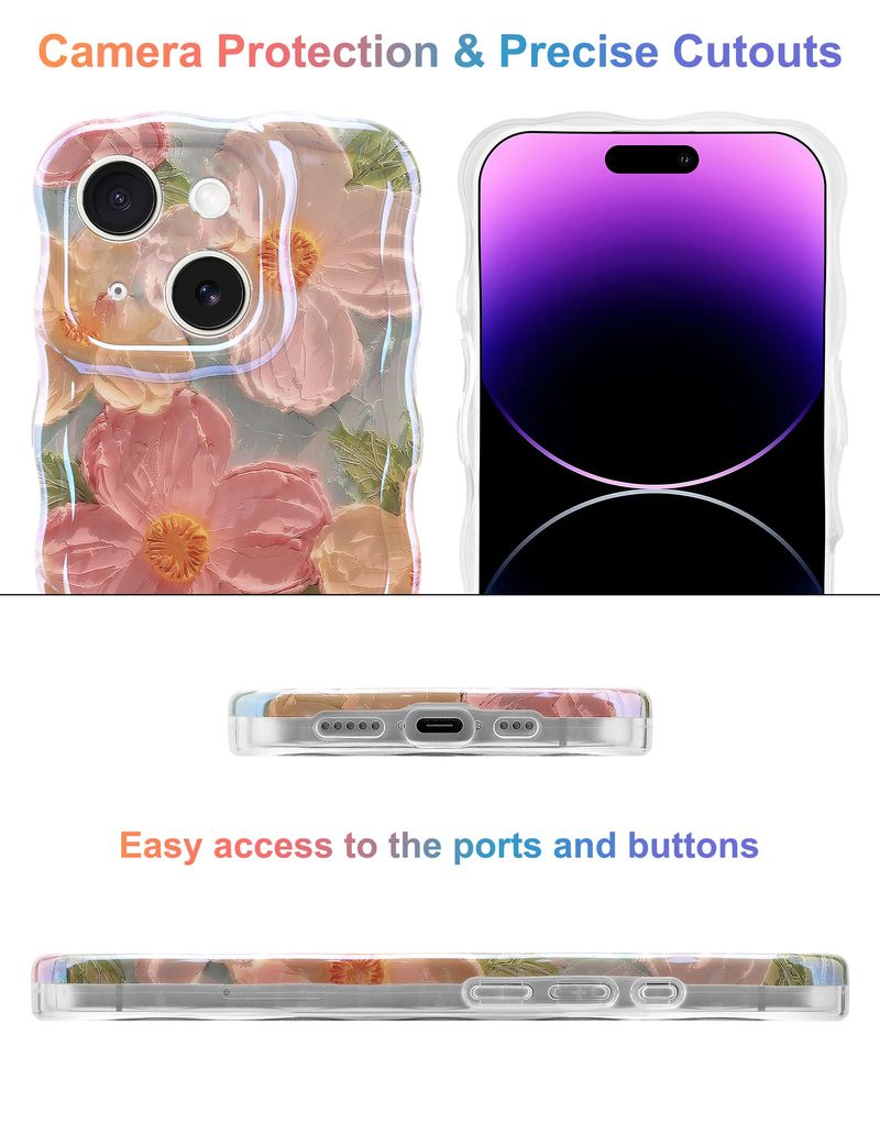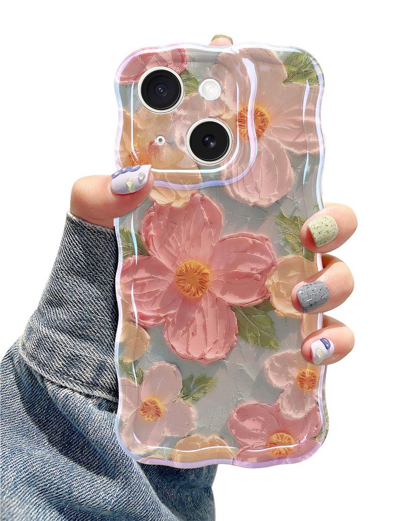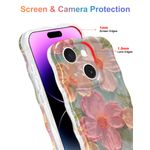 Jusy Pintura al óleo compatible con iPhone 12, colorido retro floral lindo marco ondulado rizado