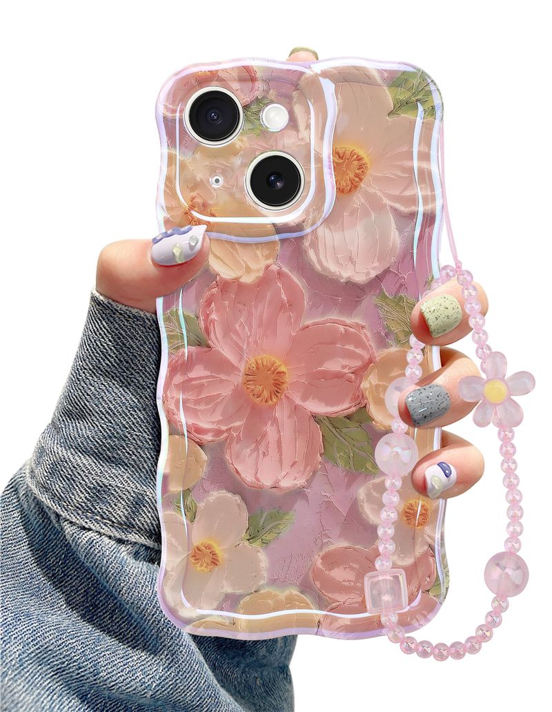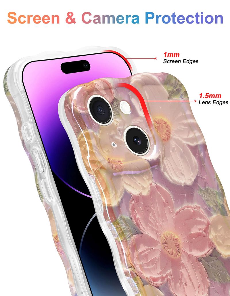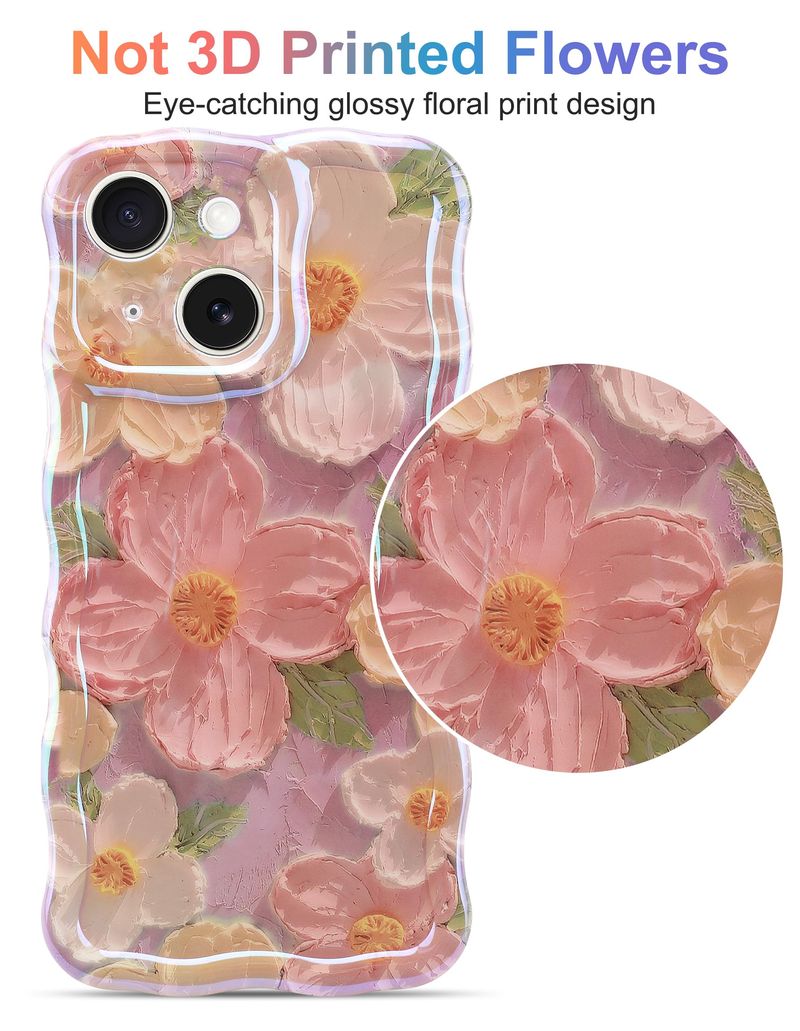 Jusy Pintura al óleo compatible con iPhone 12, colorido retro floral lindo marco ondulado rizado