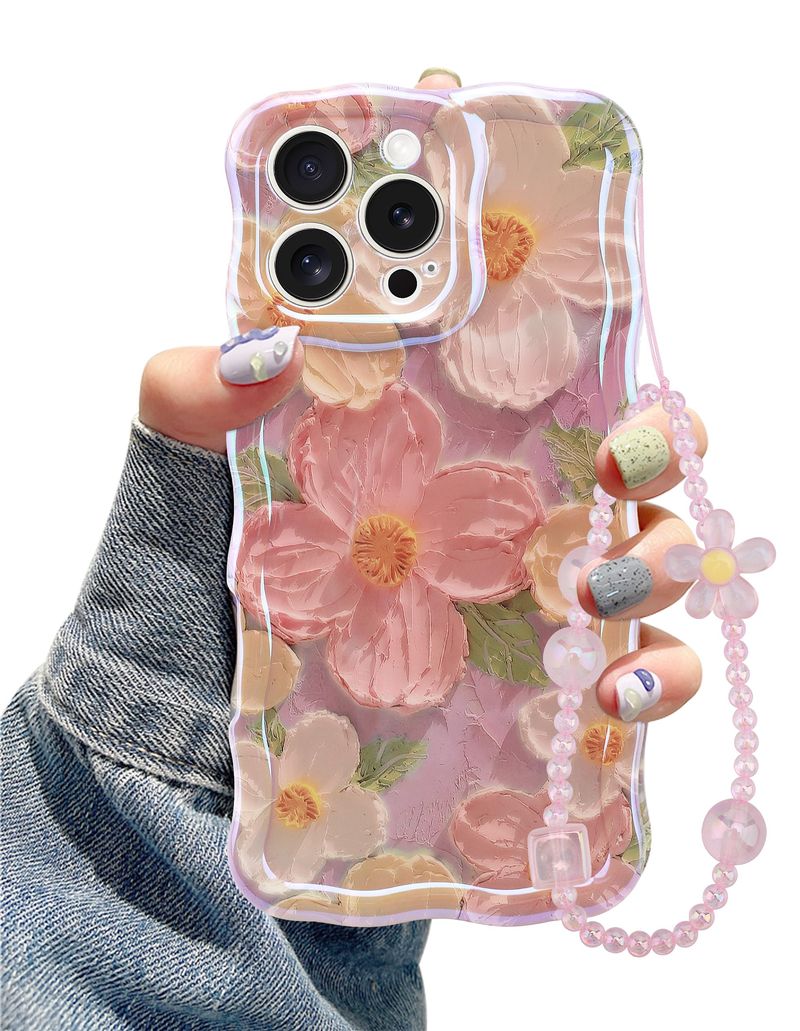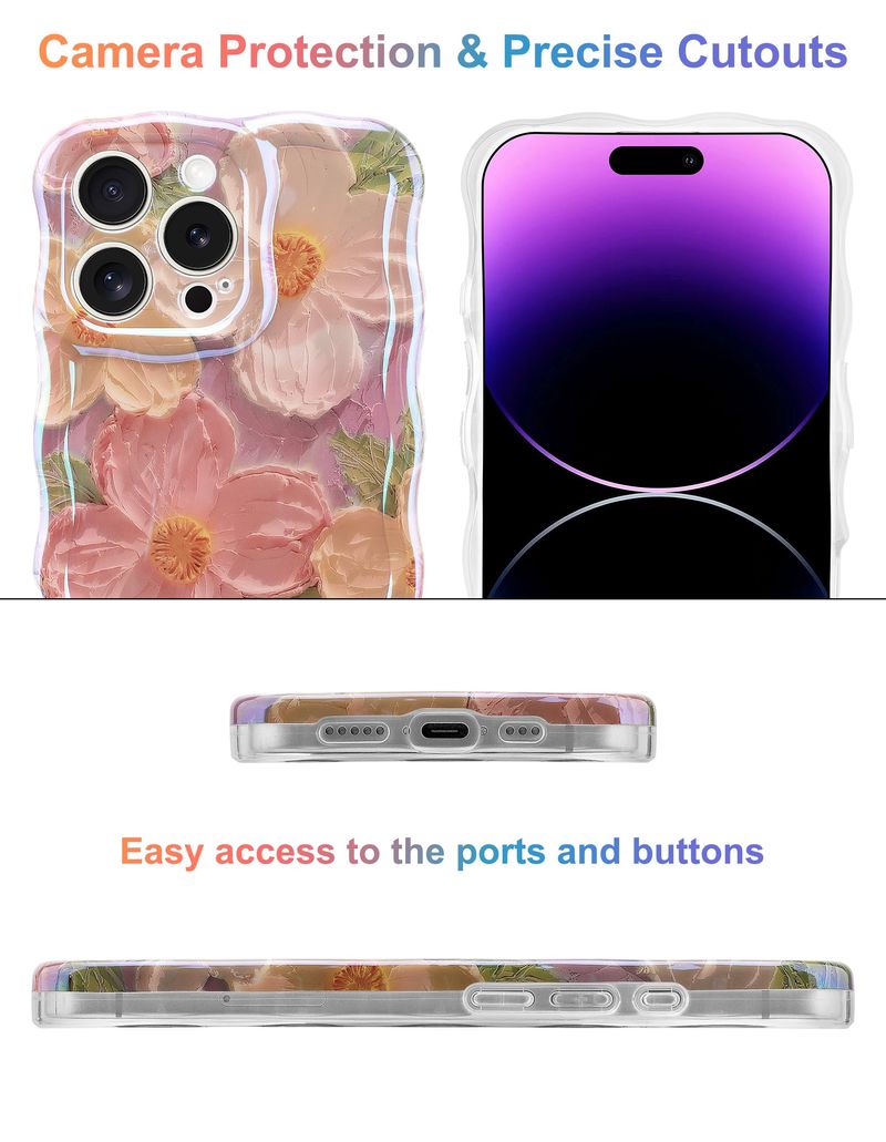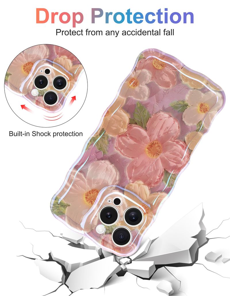 Jusy Pintura al óleo compatible con iPhone 12, colorido retro floral lindo marco ondulado rizado